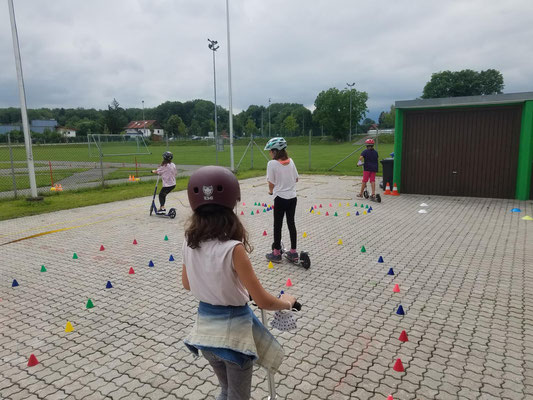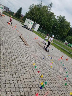 Bei vielen verschiedenen Übungen trainierten die Kinder vorausschauendes Fahren, Geschicklichkeit und Gleichgewicht.