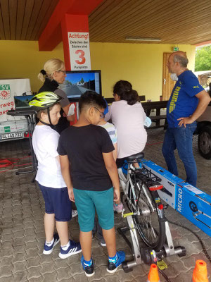 Auf den Fahrradsimulatoren galt es schnell zu reagieren, damit kein Unfall passiert.