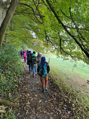 Danach ging es hinein in den Wald. Der Weg führte uns entlang eines plätschernden Baches, unter grünen Blätterdächern hindurch, vorbei an Jägerständen und Kuhweiden – ein echtes Naturerlebnis! Als wir aus dem Wald heraustraten, wurden wir mit strahlendem Sonnenschein begrüßt.