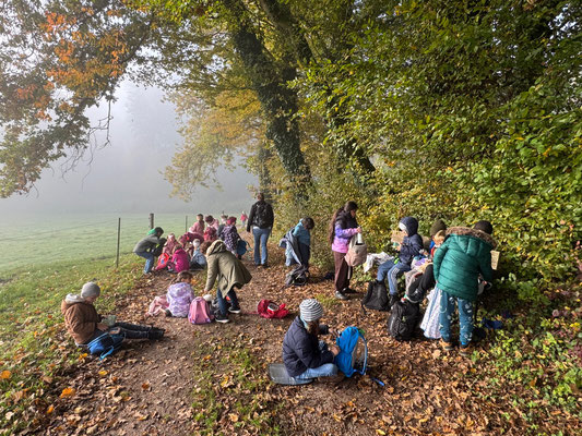 Am Waldrand legten wir eine zweite Pause ein. Die Kinder machten Brotzeit, sausten einen Waldhang hinauf, sammelten Naturmaterialien und entdeckten spielerisch ihre Umgebung. Es war schön zu sehen, wie viel Freude sie dabei hatten.
