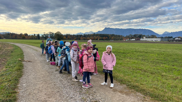 An einem wunderbar sonnigen Herbsttag machten sich die Klassen 1f und 1d der Grundschule Freilassing auf ihren lang ersehnten ersten Wandertag.